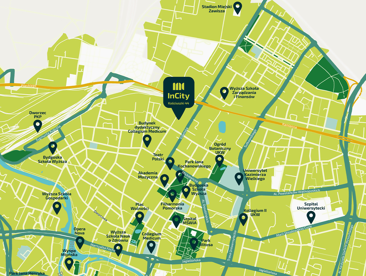 InCity to nowoczesny kompleks mieszkaniowy w bydgoskim Śródmieściu położony przy ul. Kościuszki 44.